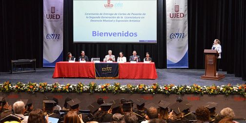El rector de la Universidad Juárez del Estado de Durango,Rubén Solís Ríos, presidió la entrega de cartas de pasantea 43 nuevos cirujanos dentistasque integran la generación XC de egresados de la Facultad de Odontología, acompañado por el director Gamaliel Ortiz Sarabia, en una emotiva ceremonia que se verificó en el Auditorio Universitario.