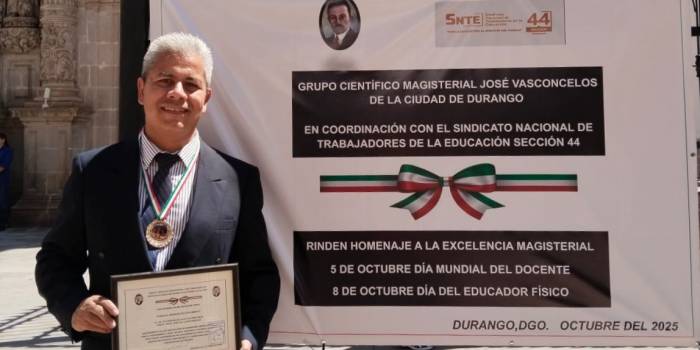 La distinción fue otorgada por el Grupo Científico Magisterial “José Vasconcelos”, en coordinación con el Sindicato Nacional de Trabajadores de la Educación (SNTE) y la Sección 44, en el marco de dos conmemoraciones significativas: el 5 de octubre, Día Mundial del Docente, y el 8 de octubre, Día del Educador Físico.