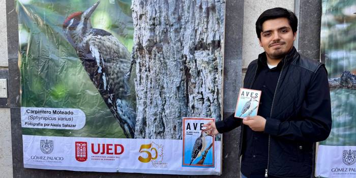 Gómez Palacio, Dgo.- En el marco del Festival de la Revolución, organizado por el Ayuntamiento de Gómez Palacio, se llevó a cabo la presentación del libro “Aves de Gómez Palacio”. La obra fue elaborada por Alexis Salazar García, egresado de la Licenciatura en Ecología de la Facultad de Ciencias Biológicas (FCB) de la Universidad Juárez del Estado de Durango (UJED).
