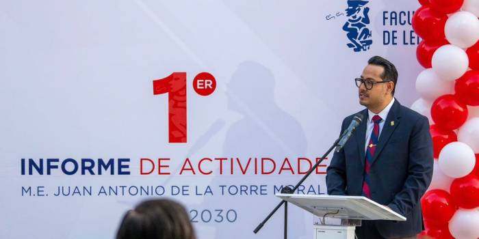 Durante su mensaje, el director Juan Antonio De la Torre Morales destacó que este primer año de gestión se distinguió por la consolidación académica, la innovación educativa y el fortalecimiento de la vinculación institucional, en alineación con el Plan de Desarrollo Institucional 2024–2030. “Este informe refleja un trabajo colectivo. La Facultad de Lenguas creció, innovó y fortaleció su identidad. Somos una comunidad que avanza con visión global y sentido humano”, expresó.