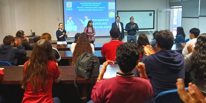 Con el propósito de fortalecer la capacidad de respuesta ante situaciones de emergencia y promover el bienestar emocional dentro de la comunidad estudiantil, la Escuela Preparatoria Diurna de la Universidad Juárez del Estado de Durango (UJED), a través del Departamento de Orientación Educativa, impartió el Curso de Primeros Auxilios Generales y Psicológicos, dirigido a jefes y subjefes de grupo.
