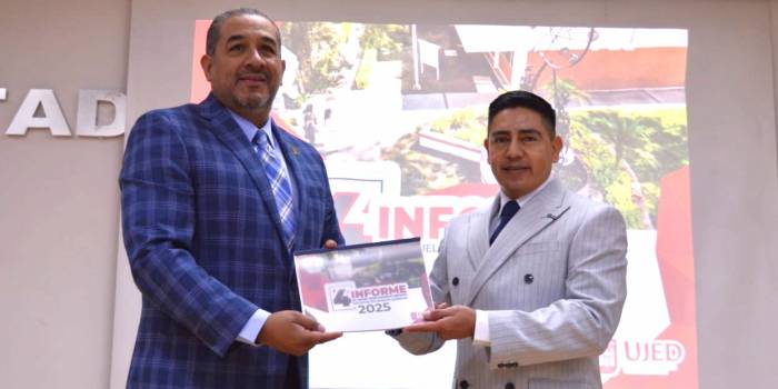 Finalmente, felicitó al Dr. Escobedo Bretado por su liderazgo al frente de la Facultad y refrendó el compromiso de la Rectoría para continuar fortaleciendo la ciencia universitaria. “Este informe nos augura un futuro de crecimiento y consolidación imparable. Sigamos trabajando juntos por la grandeza de nuestra Universidad Juárez del Estado de Durango”.