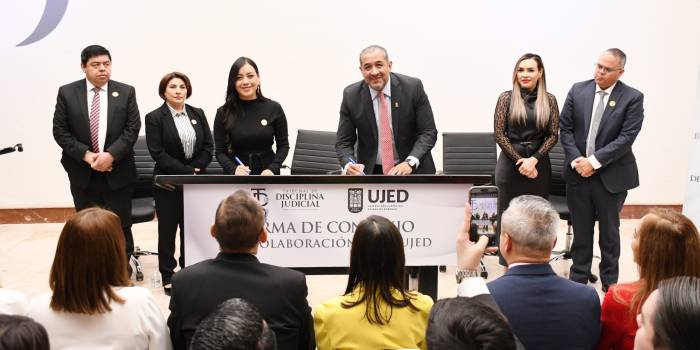 En un acto solemne que refrenda el compromiso con la legalidad, la transparencia y la excelencia institucional, la Universidad Juárez del Estado de Durango (UJED) y el Tribunal de Disciplina Judicial del Poder Judicial del Estado formalizaron un convenio de colaboración, lo que representa un avance en la vinculación entre la academia y las instituciones responsables de la impartición de justicia.