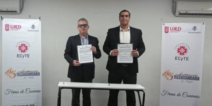 La Escuela de Ciencias y Tecnologías de la Universidad Juárez del Estado de Durango, encabezada por Luis Alejandro Torres Monreal, y el Sistema Estatal de Telesecundaria del Estado de Durango concretaron la firma de un convenio de colaboración orientado a impulsar el acceso y la continuidad educativa, al facilitar que estudiantes de secundaria se incorporen al nivel medio superior y accedan a mejores oportunidades de formación.