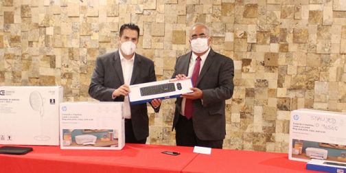 El rector Rubén Solís Ríos entregó equipos de cómputo y mobiliario al SPAUJED